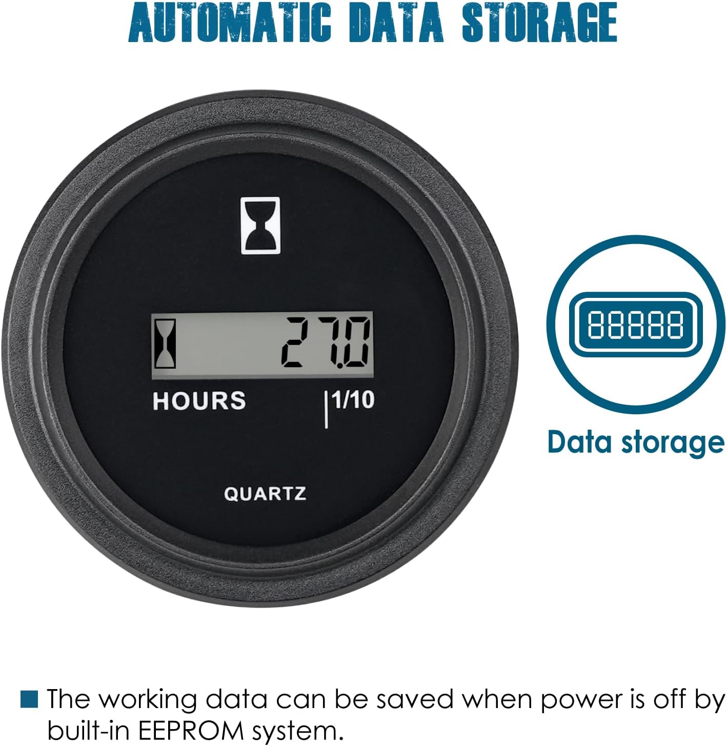 Runleader RL-HM005 LCD Hour Meter,AC 86V to 230V & DC 4.5V to 90V, Data Storage & Waterproof Design for Club Car Forklift Go-Kart Lawn Mower Sawmill etc