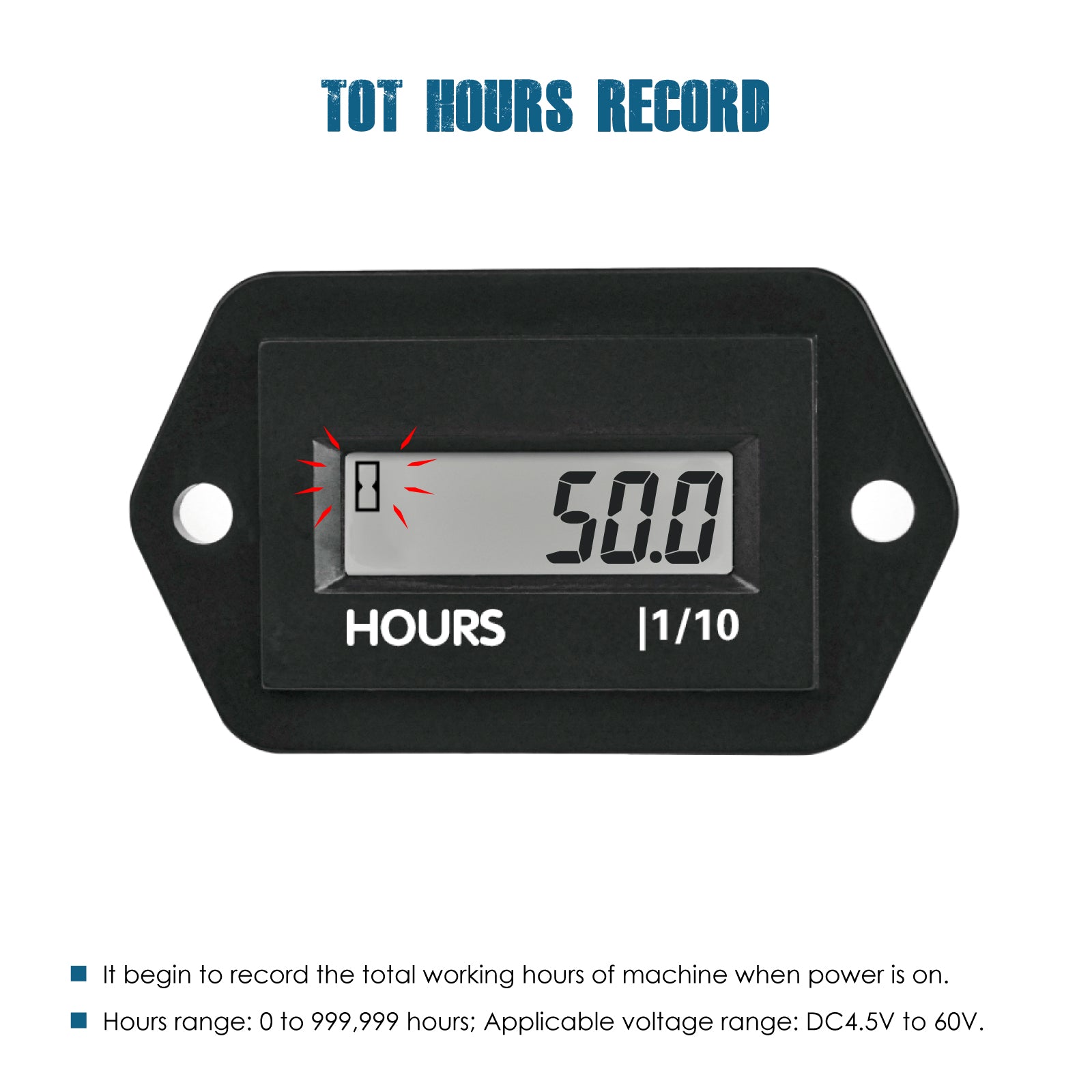 - PRODUCT INSTALLATION ---- Easy to mount it at any proper place of machine by drill-in and plug-in, the panel cutout size: 37.00mm*24.00mm(1.46 inches * 0.94 inch),the attached mounting bracket and screws will keep the mounting more stably; Connect the 2 power pins with positive and negative poles of external power to activate the hours tracking.