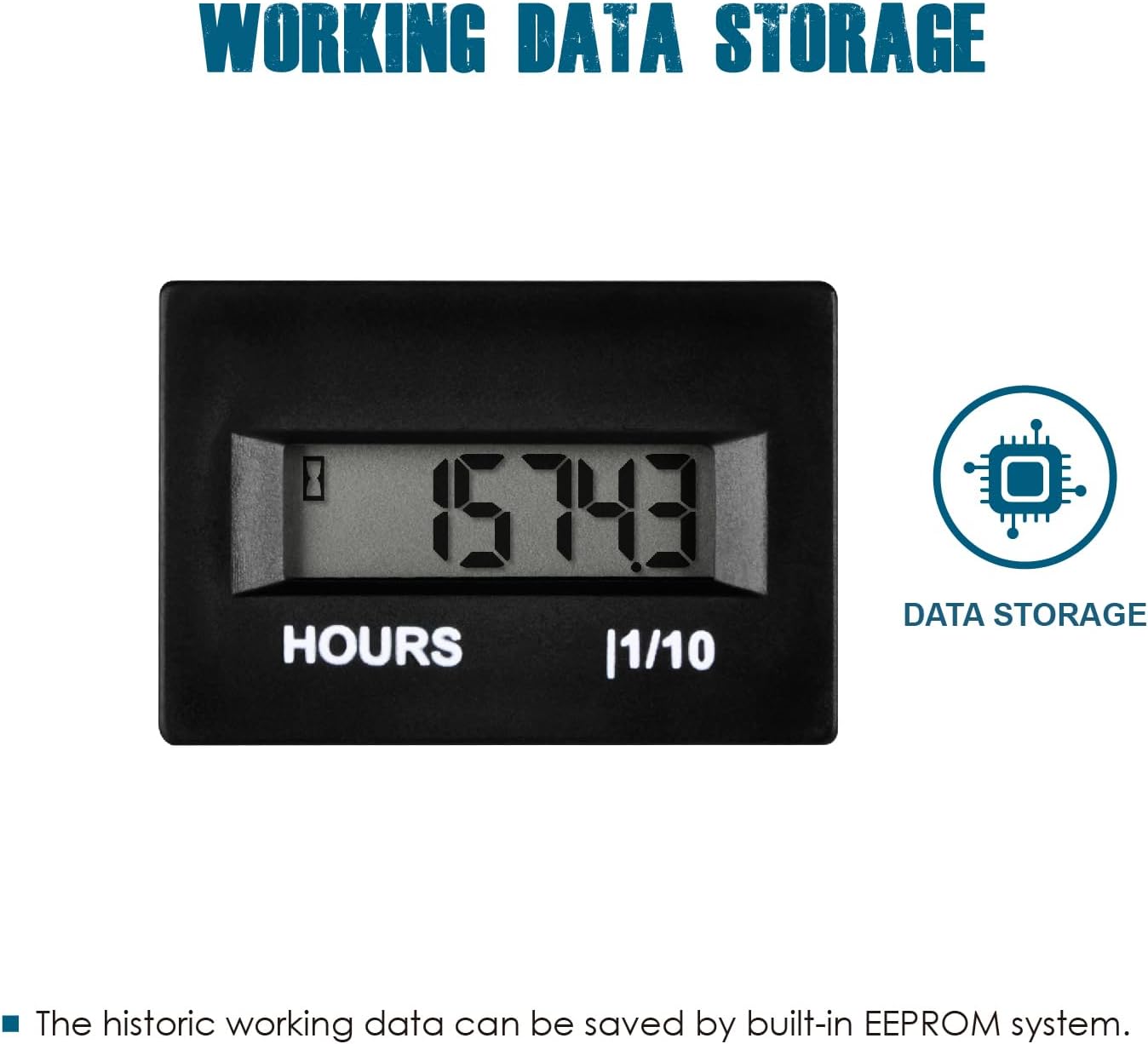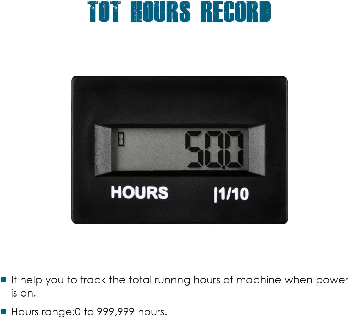 Runleader RL-HM010A-SC Digital Hour Meter, Inductive Hours Counter, AC/DC 8V to 60V for Lawn Garden Tractor Compressor Generator ATV Motorcycle Club Car Forklift Scrubber Machine