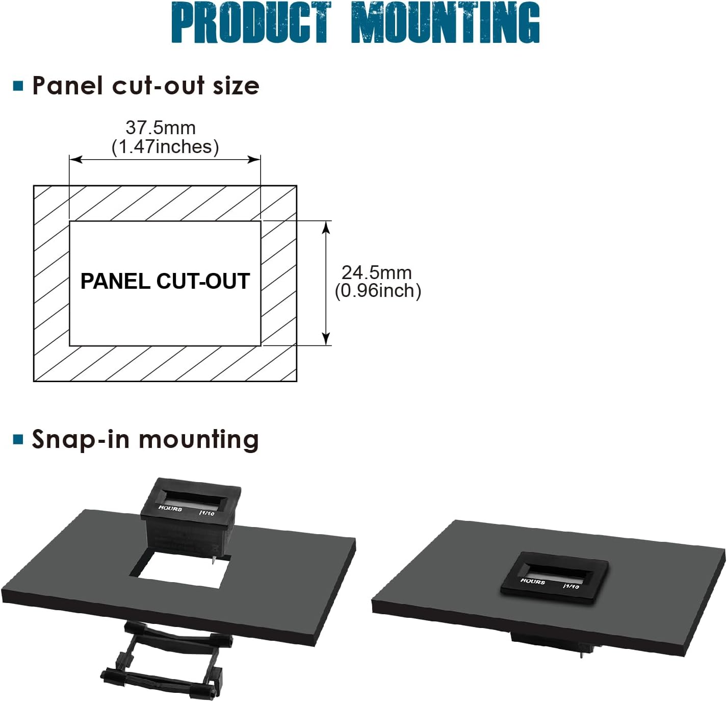 - INSTALLATION ---- Easy to install by snap-in design fits standard panel cut-out size:Approx 37.5×24.5mm(1.5×1 Inch); interior mounting bracket will make the mounting more stable.