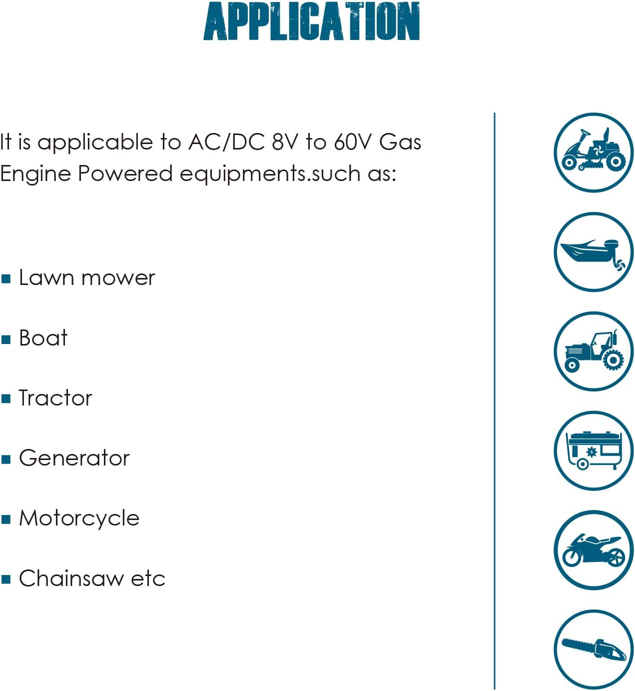 - WORKING APPLICATION---- Connect the pins(positive + and negative -) with external power device when use it on AC/DC operated machines; Detect the inductive signal from spark plug by simple one-wire wrap when it works on gas engine/machines.