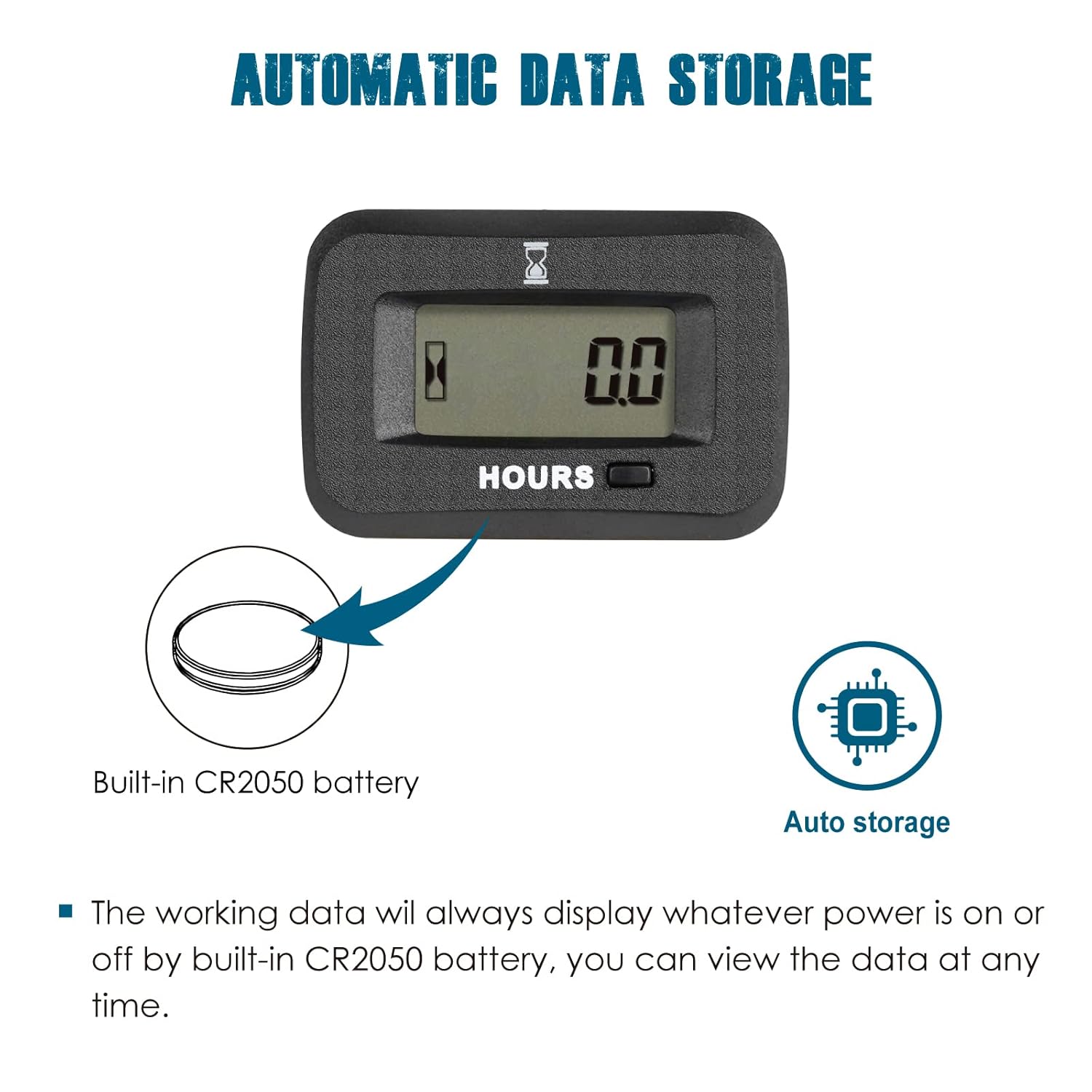 - HOURS:Keep accurate logs for regarding run-time hours when engine/machine is on;Hours read up to 999,99 hours with 0.1/1 hour resolution.