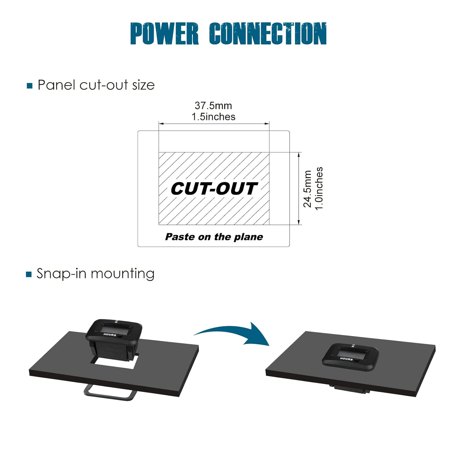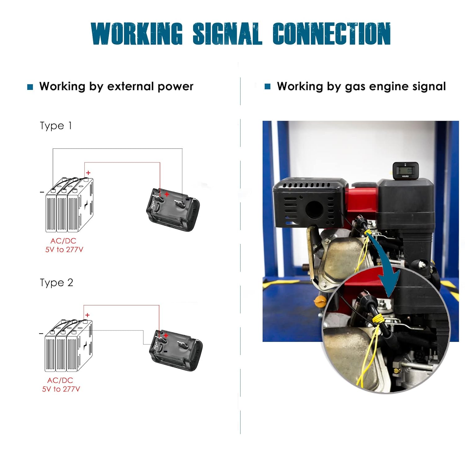- MOUNTING/SIGNAL DETECT: Easy to mount it on proper position by drill-in method(panel cut-out size:0.96x0.49 inches);Connect with 2 no - polarized power pins for AC/DC powered machine using; connect the signal foot pin with inductive wire then warp on spark plug for gas engine using;Enhanced rubber mat and connerctor sheath will keep the mounting more stable
