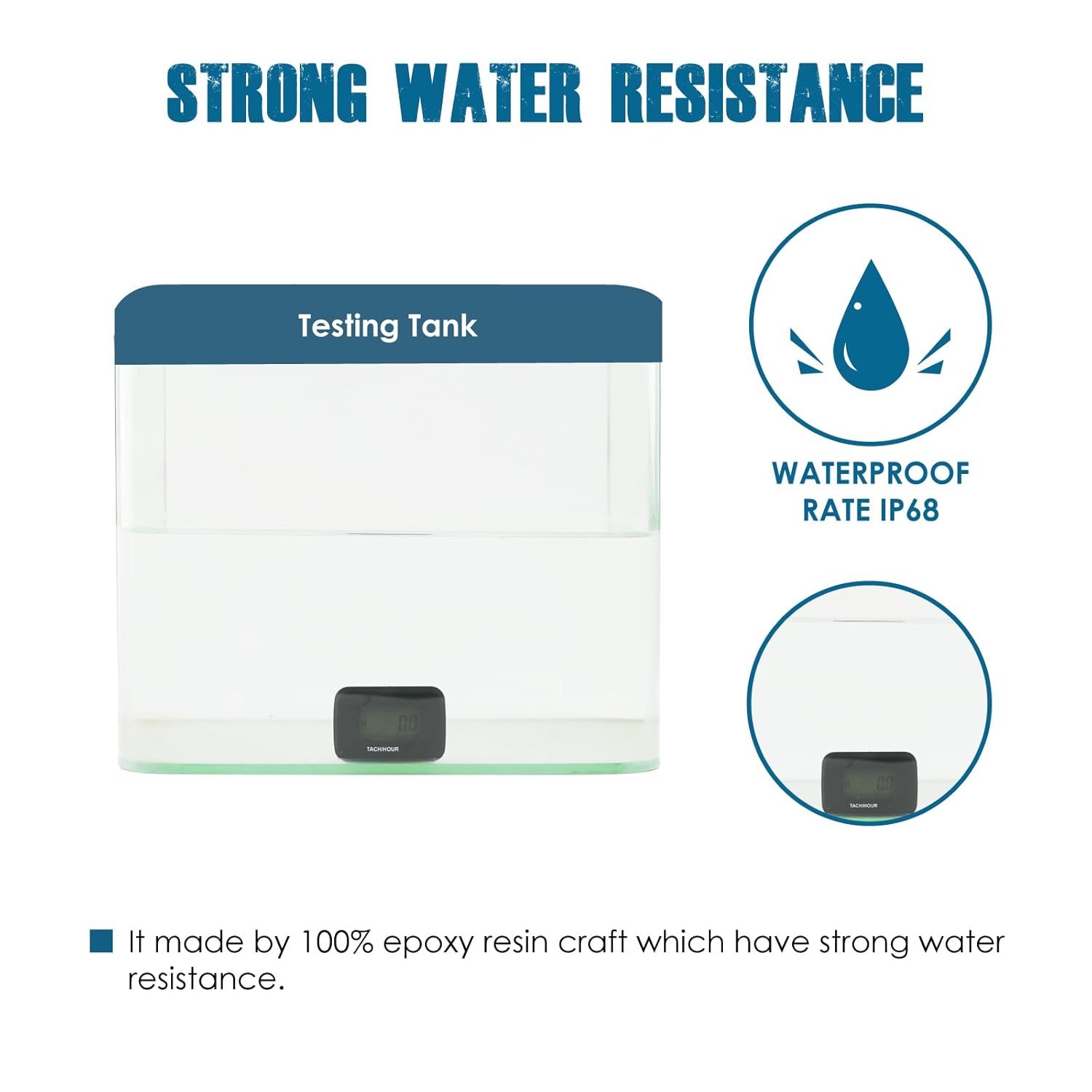 - WATER RESISTANCE ---- This hour meter is made by 100% epoxy resin craft, it have strong water resistance and run normally into 10 meters underwater up to standards IP68.