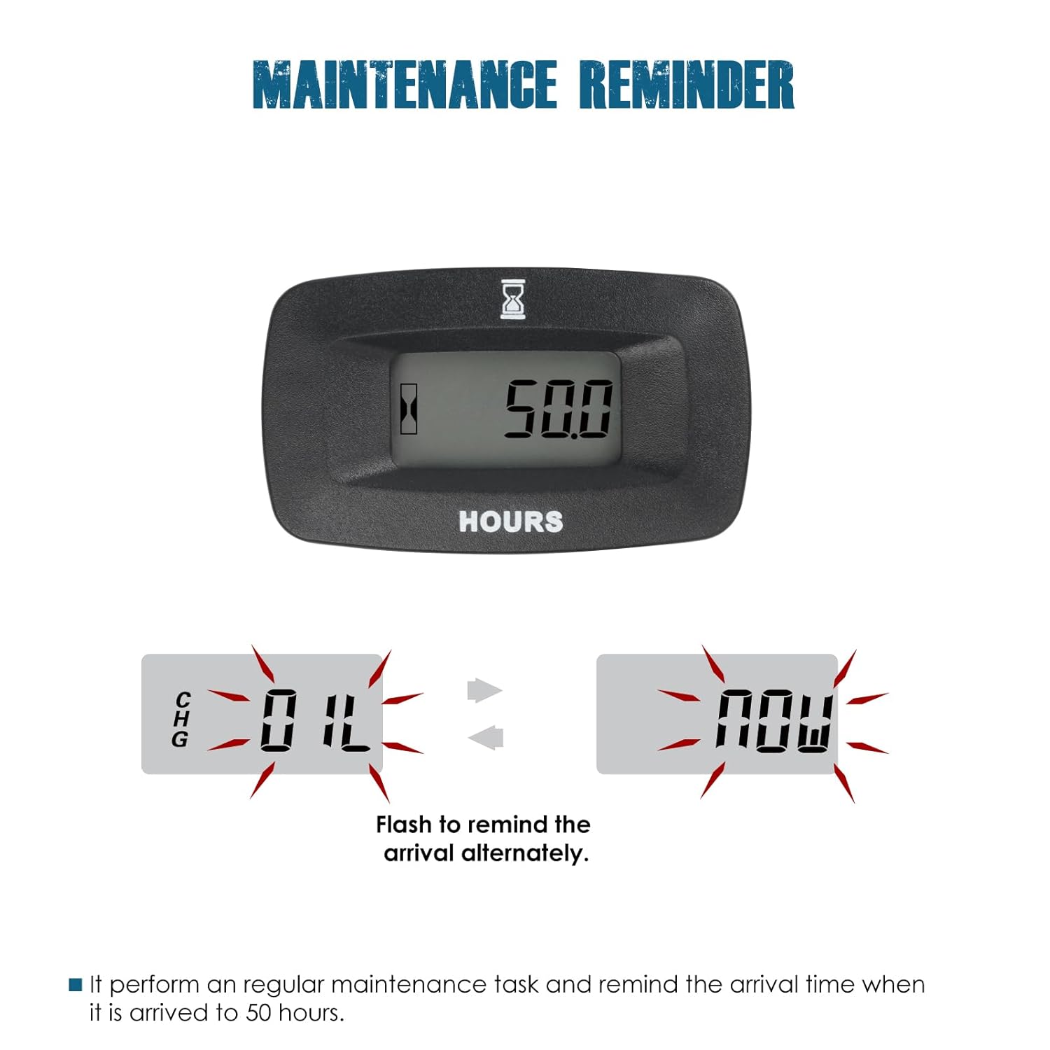 - MAINTENANCE REMINDER ---- It perform the maintenance reminder every 50 hours based on total hours running.