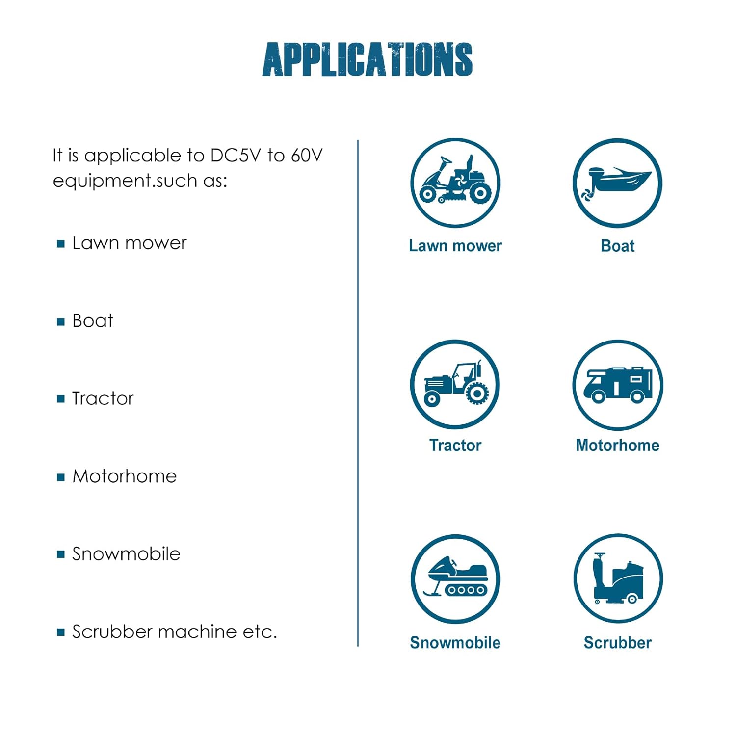 - APPLICABLE MACHINE TYPES ---- It can be worked on DC powered such as golf cart,forklift, motorhome,scrubber machine etc.