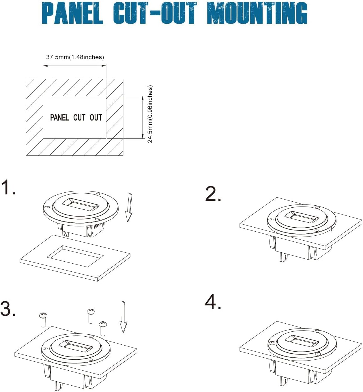 - MOUNTING METHOD---- User can mount it at any proper place by drill-in and plug-in by panel cut-out size: 37.5x24.5(1.5x1 inches).