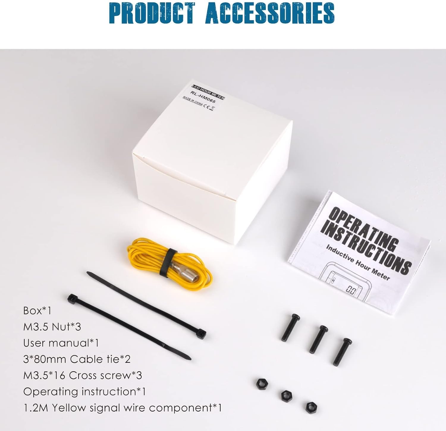 Runleader RL-HM065 LCD Hour Meter, Works on AC/DC 5V to 277V Equipment.