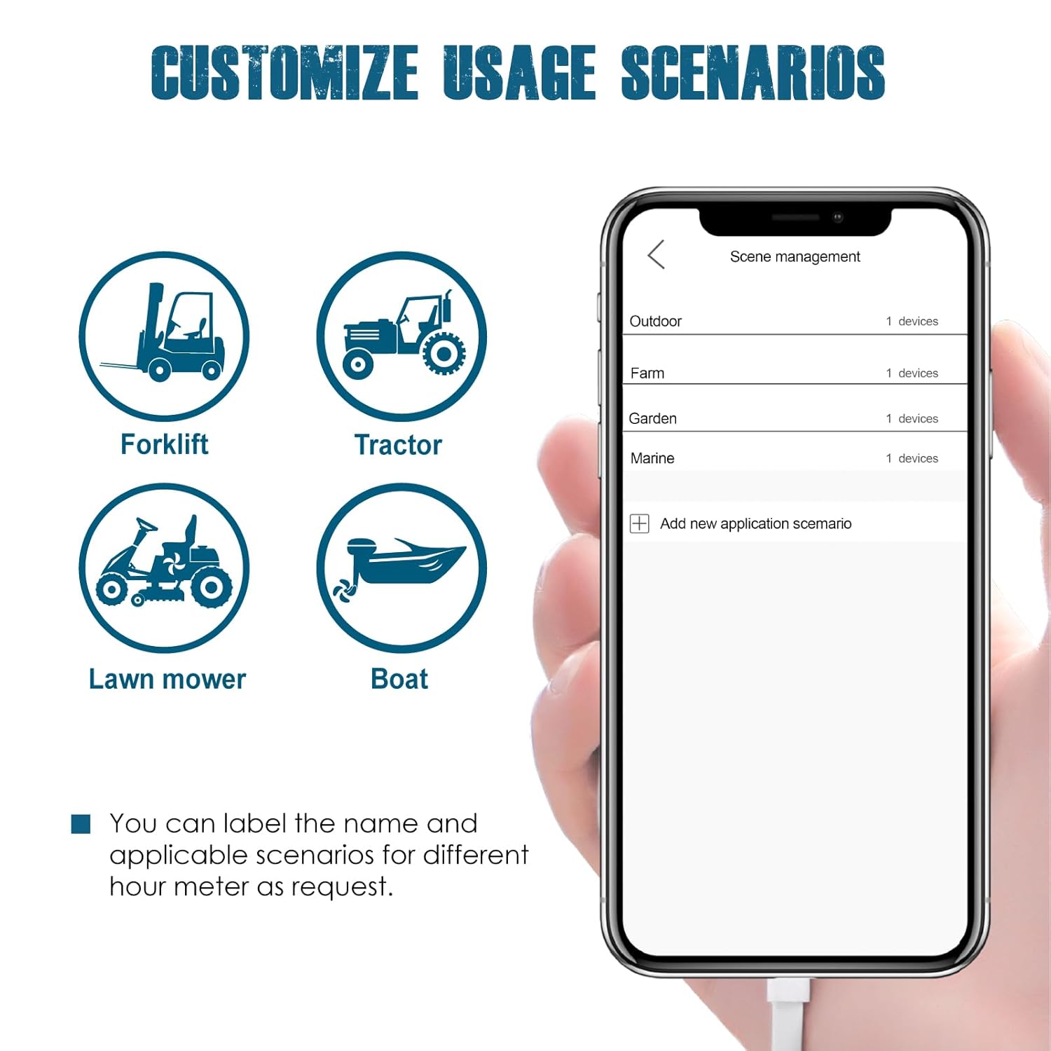 - BLUETOOTH REMOTE OPERATION ---- Each hour meter can be paired via bluetooth with Apple or Android phone by the "Moresee" app, you can check and adjust the equipment working data by your mobile; The historic data can be exported to maintenance purpose.