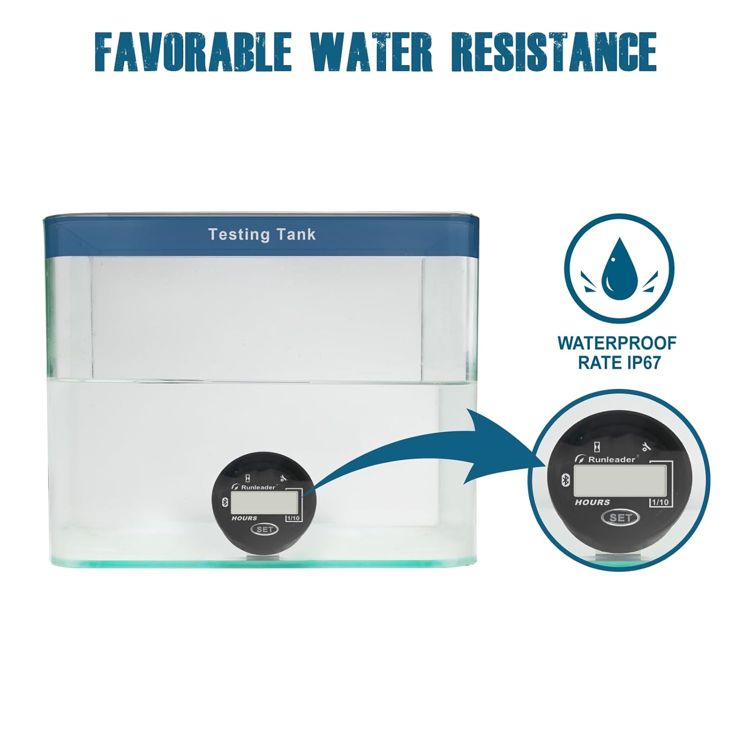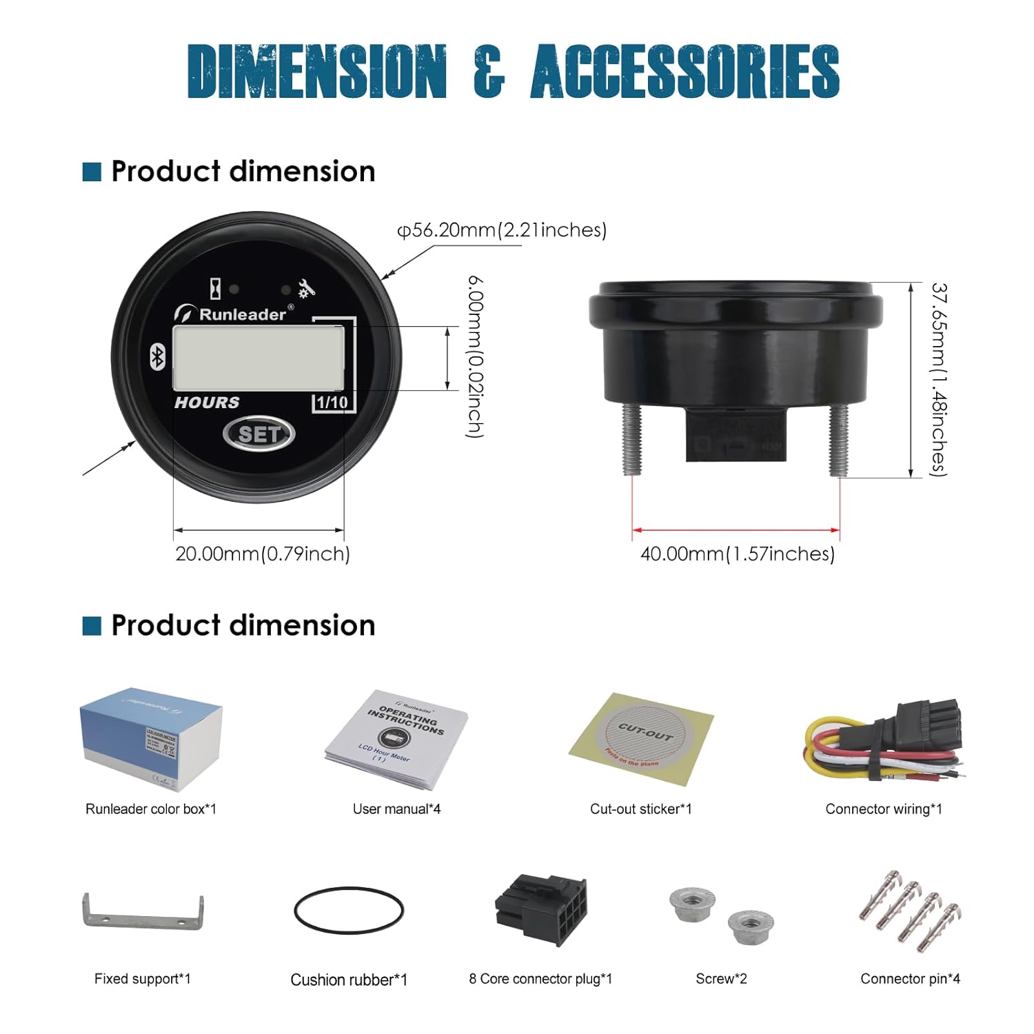 Runleader RL-HM069D LCD Digital Bluetooth Communication Hour Meter,Voltage.AC 8V to 50V/DC 8V to 65V,Multiple Maintenance Reminders,Waterproof Design for Lawn Mower Tractor Boat Snowmobile Scrubber Machine.